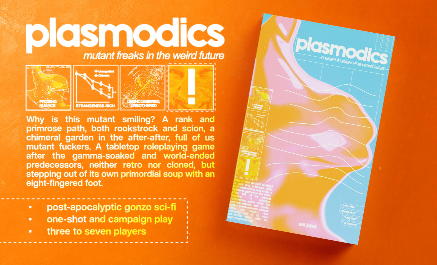 Plasmodics: mutant freaks in the weird future. In the remnants of the world, play in the smithereens. Get weird in the body and in the mind with this post-apocalyptic TTRPG.